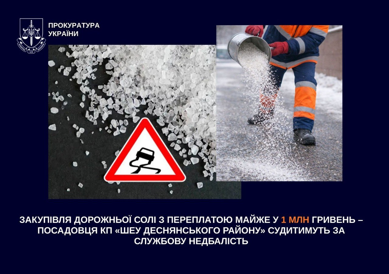 По версии следствия, чиновник ДЭУ в ноябре 2023 года заключил договор с подрядной организацией на закупку дорожной соли. Экспертиза показала, что предприятие переплатило около 1 млн грн.