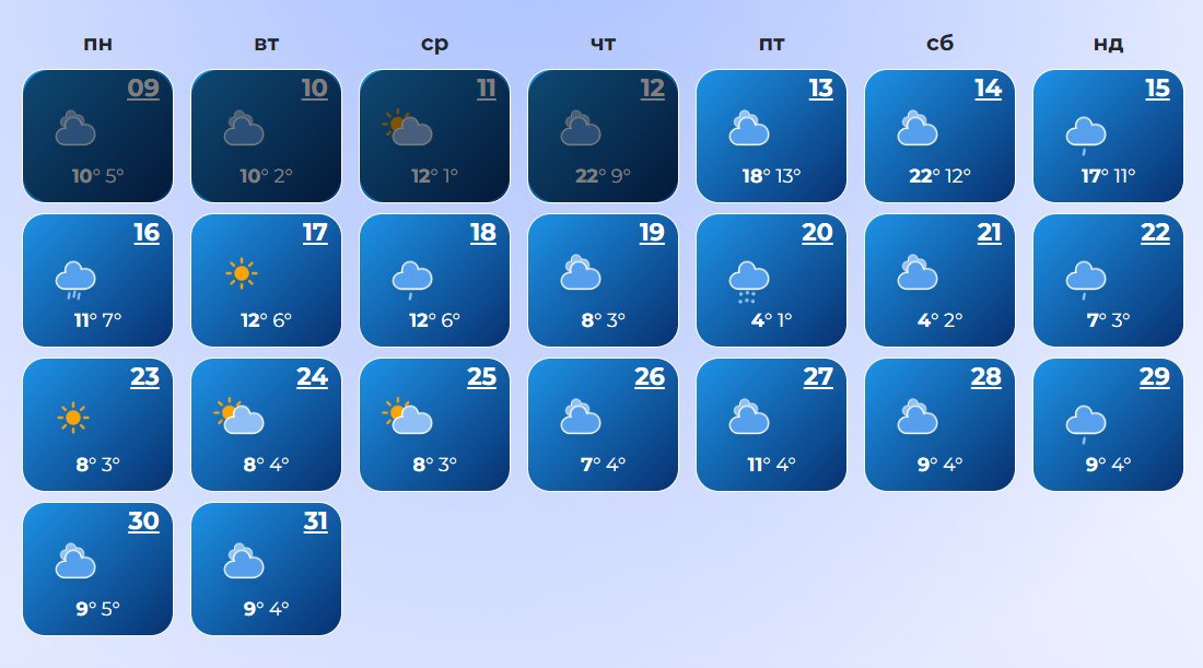 Минусовых температур на протяжении месяца не ожидается - самый прохладный показатель достигнет 3 градусов с отметкой "плюс".