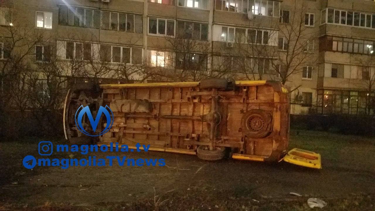 Пьяный водитель не справился с управлением и вылетел на тротуар. В результате транспортное средство перевернулось на бок.