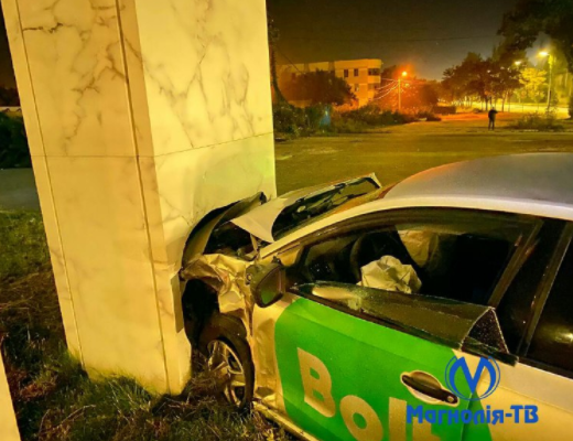 В ночь на пятницу, 1 октября, на Новобеличах в Киеве автомобиль службы такси в ходе ДТП слетел на обочину и врезался в столб. Есть пострадавший.