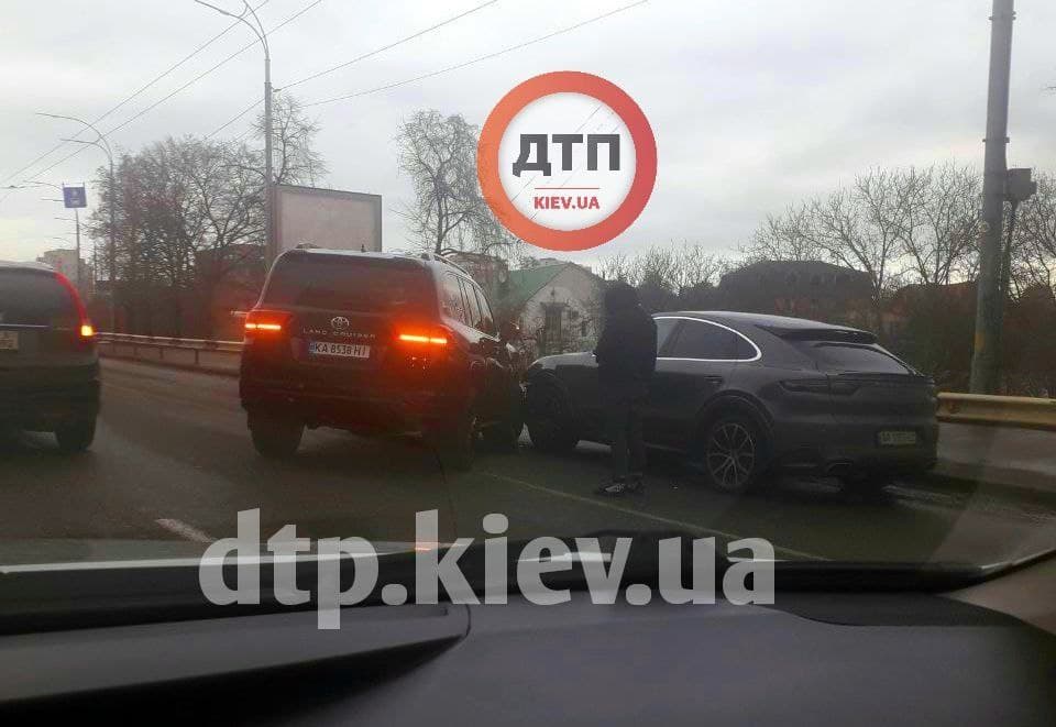 В Киеве произошло ДТП с участием двух дорогих внедорожников - Toyota Land Cruiser протаранила Porsche Cayenne Coupe.