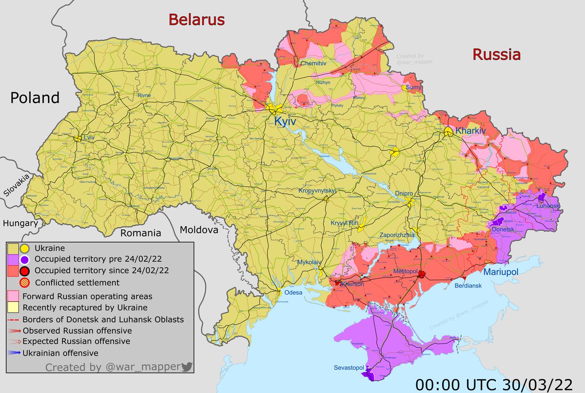 Интересно, что еще 30 марта карта боевых действий выглядела так.