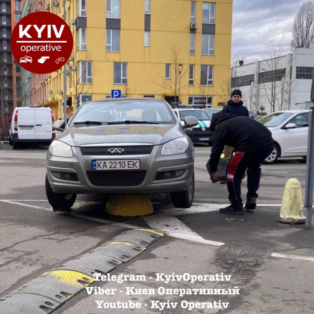 В столице Украины водители продолжают удивлять жителей и гостей города странным выбором парковочного места. В субботу, 19 февраля, в Днепровском районе Киева обнаружили автовладельца, наехавшего прямо на ограничителя парковки.