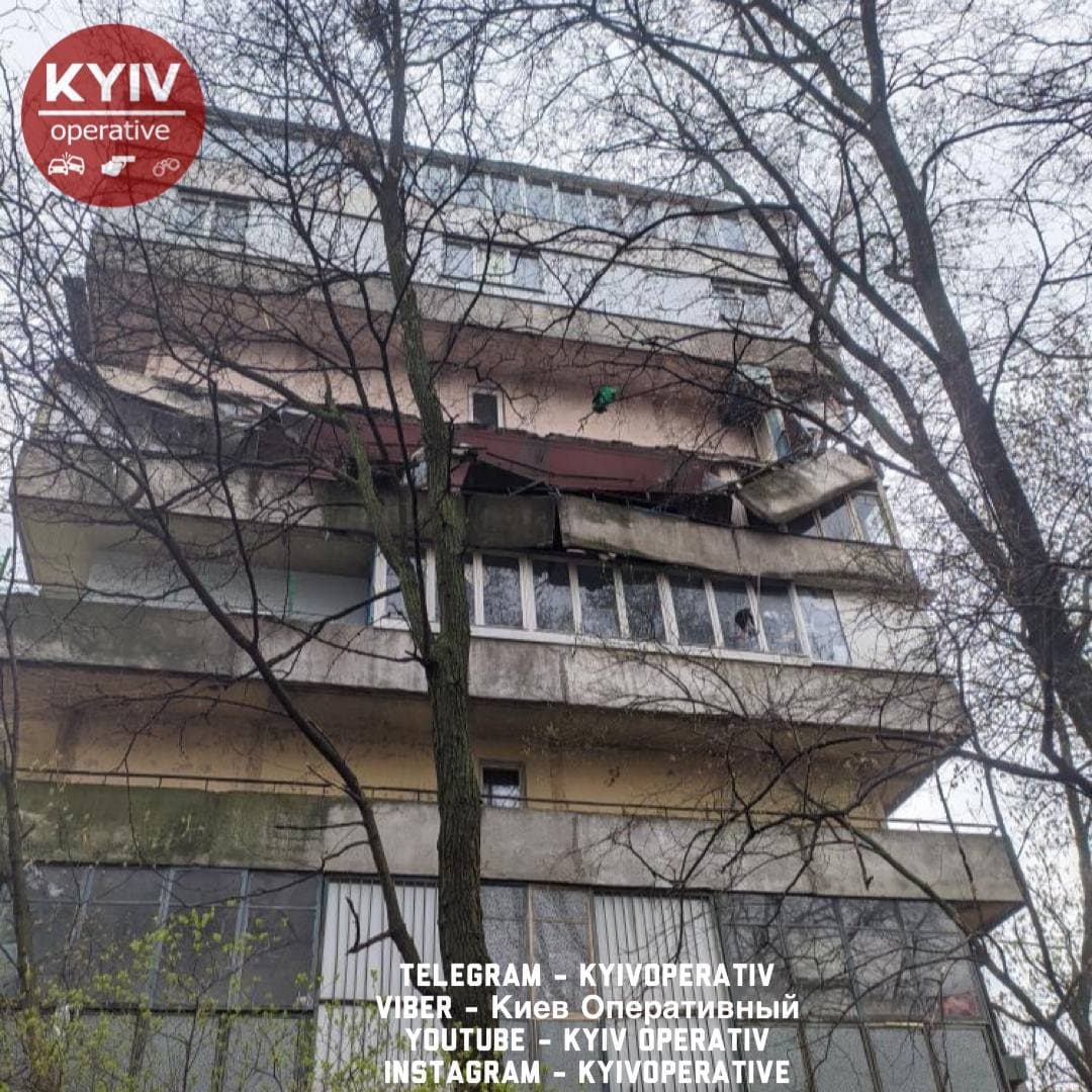 В Шевченковском районе Киева в многоэтажном жилом доме рухнул балкон.