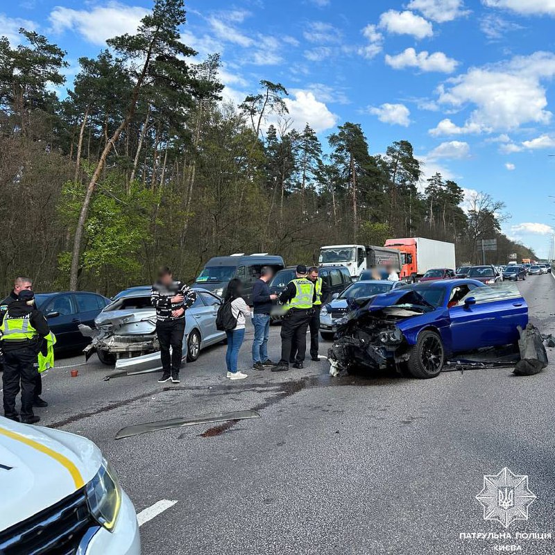 На опубликованном кадре видно, что в ДТП на выезде из Киева пострадали два легковых автомобиля. Информация о пострадавших на данный момент не уточнялась.