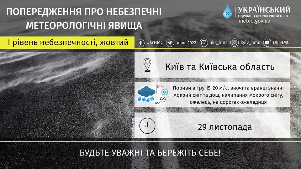 В среду, 29 ноября, погода будет "нелетной" не только в Украине в целом, но и в частности в Киеве - киевлянам советуют оставаться дома.