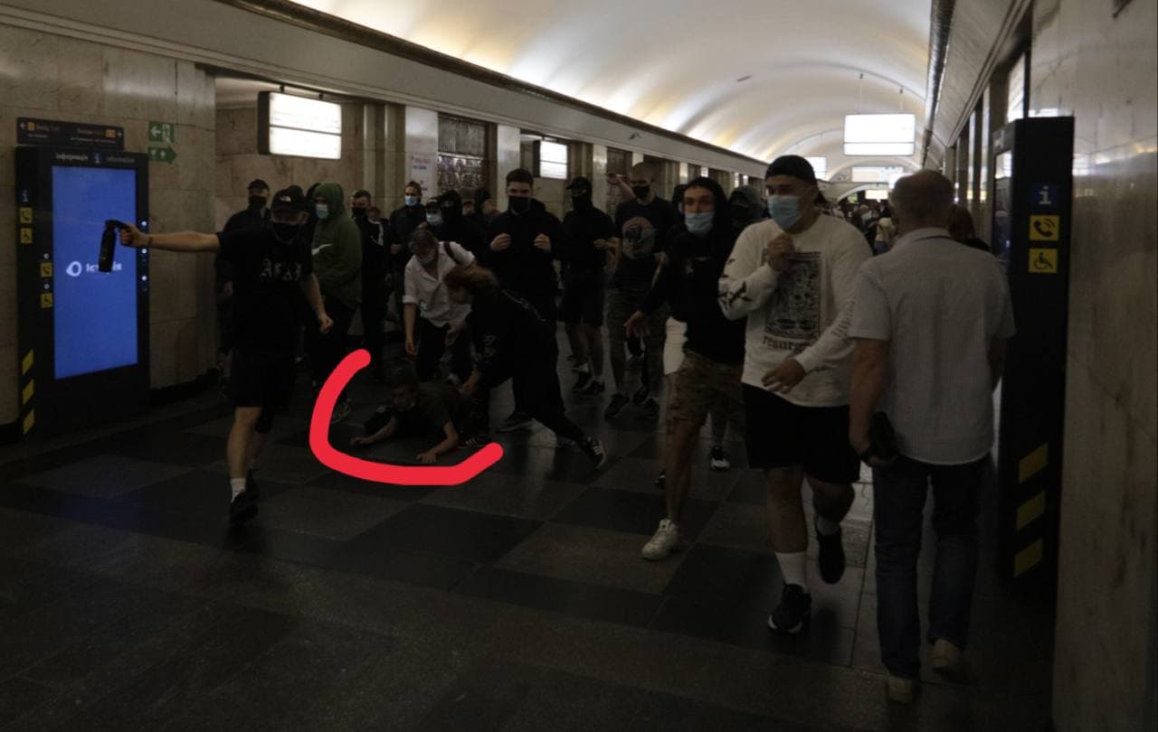 В Киеве на метро "Крещатик" две группы молодых людей устроили массовую драку, во время которого одна из сторон применила баллончики со слезоточивым газом.