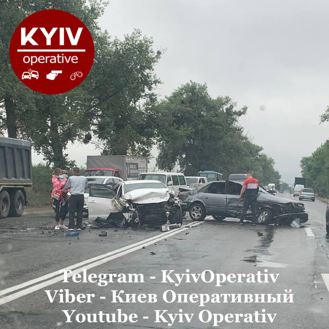 В среду, 18 августа, под Киевом произошло ДТП с участием как минимум двух автомобилей. Образовалась пробка.
