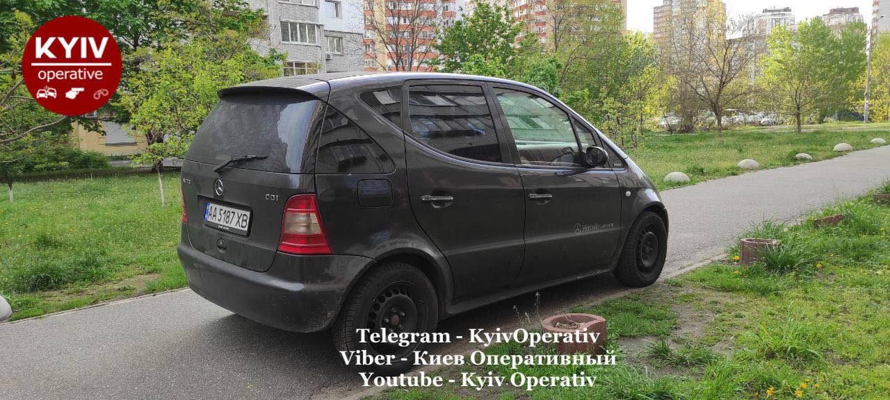 В Киеве в жилых кварталах местных жителей возмутили водители двух автомобилей, которые оставили свои транспортные средства на зеленом газоне и прямо на пешеходной дорожке.