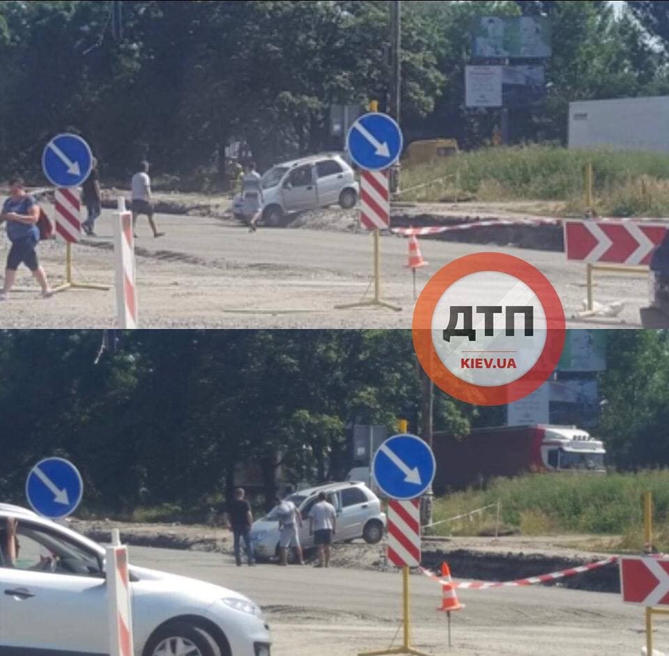 В Киеве водитель попал в курьезное ДТП ради того, чтобы сэкономить пару-тройку минут своего времени.
