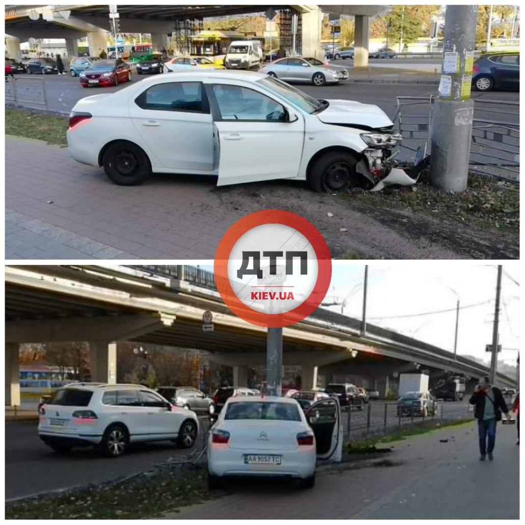 Инцидент произошел на проспекте Победы, вблизи станции метро "Нивки". По словам очевидца, автомобиль Peugeot заехал на тротуар и врезался в столб. Пешеходов в этот момент там не было.