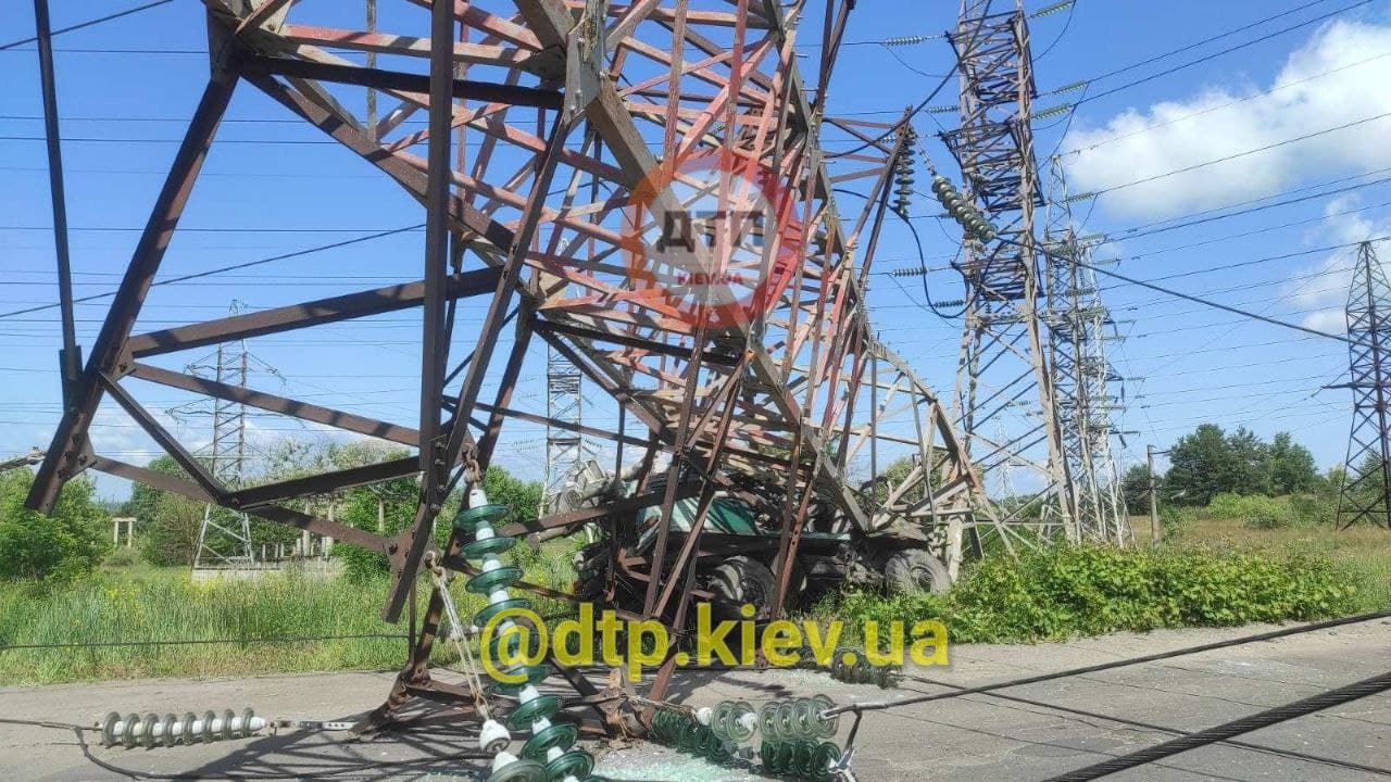 По словам очевидцев, которые опубликовали фото последствий аварии в Telegram-канале "ДТП. Киев", грузовой автомобиль ГАЗ-66 сорвался с буксира и сбил опору ЛЭП.
