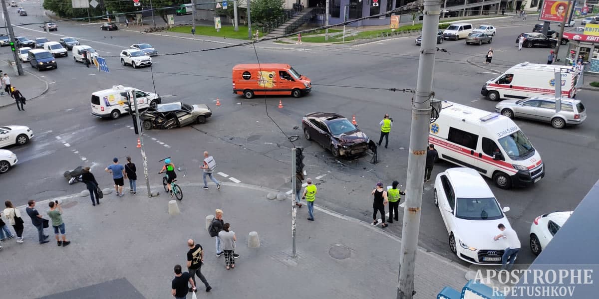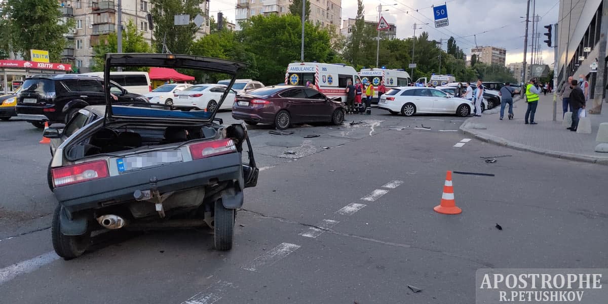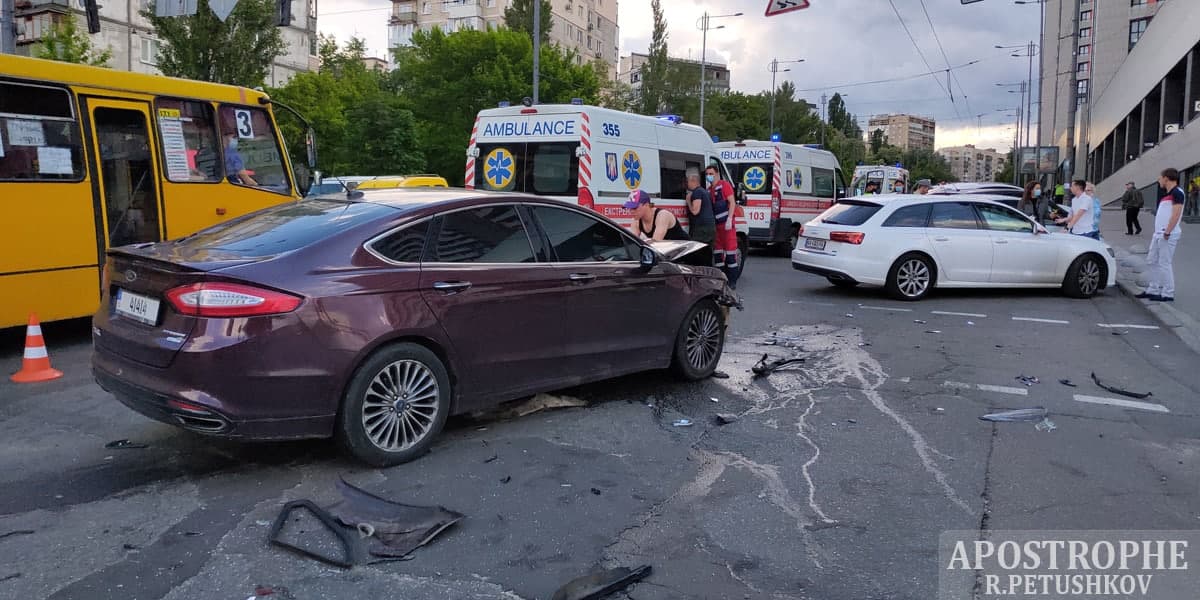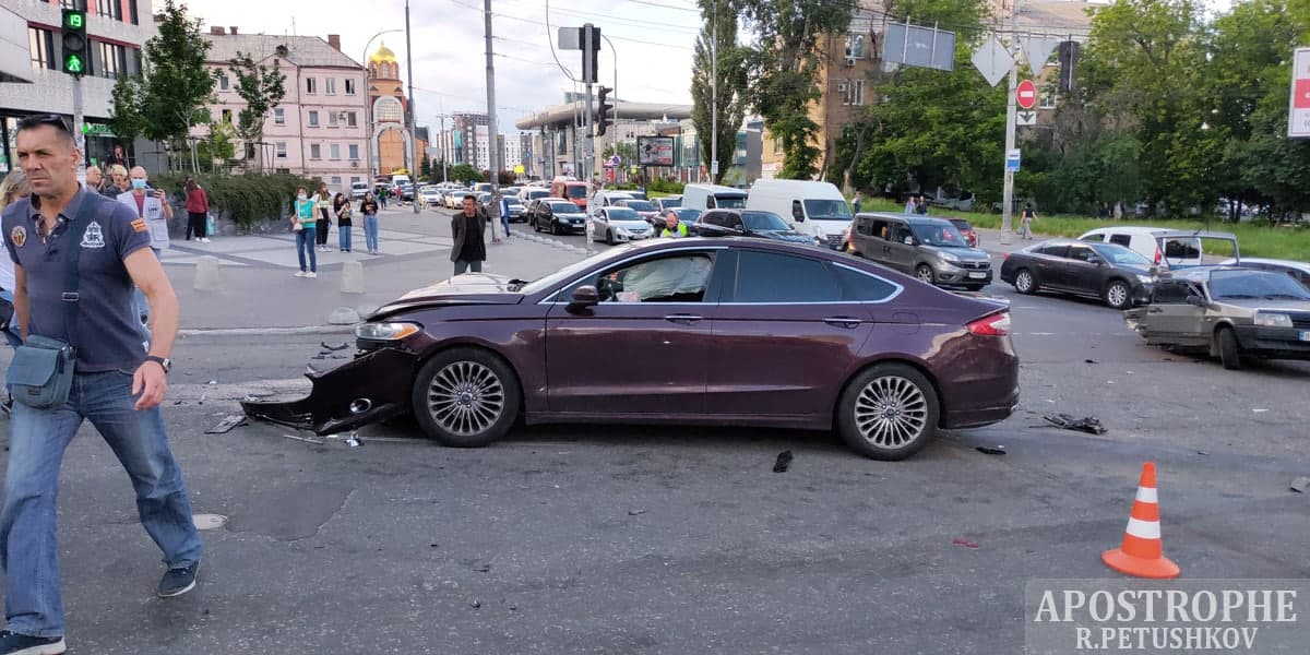 В понедельник, 7 июня, в Киеве произошла головокружительная авария. Одного из участников ДТП выбросило из машины. Из-за аварии затруднено движение со стороны Южного вокзала.