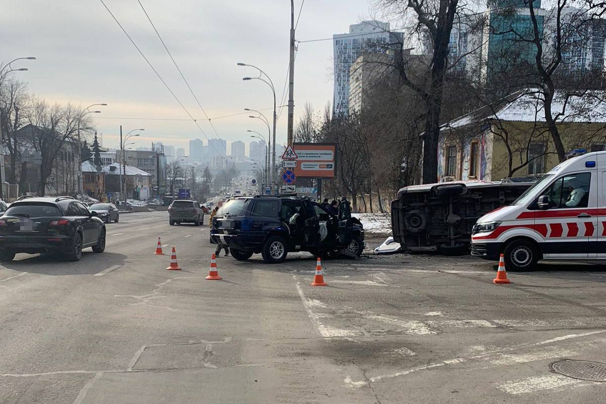 В результате ДТП возле "Охматдета" в Киеве 9 февраля, пострадали шесть человек, среди которых и младенец. В "скорую", которая перевозила малыша в больницу, влетел внедорожник "Гранд Чероки".