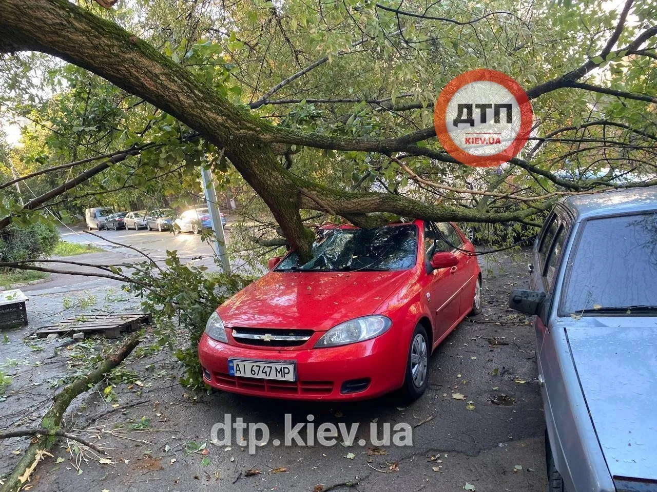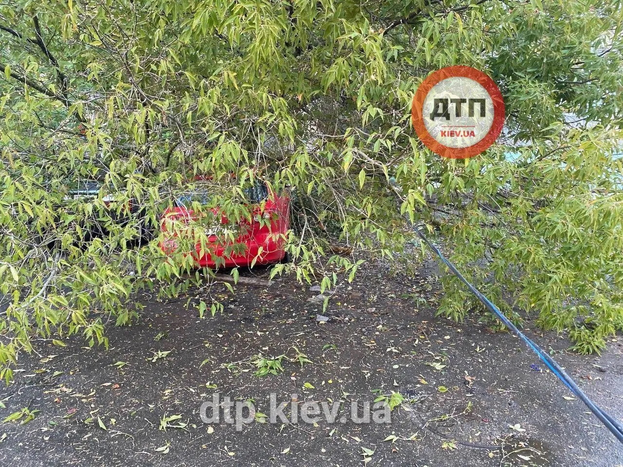 Случаи непогоды были зафиксированы в Голосеевском и Соломенском районах столицы: в одном дерево упало на автомобиль и зацепило провода, а в другом дерево перекрыло дорогу.