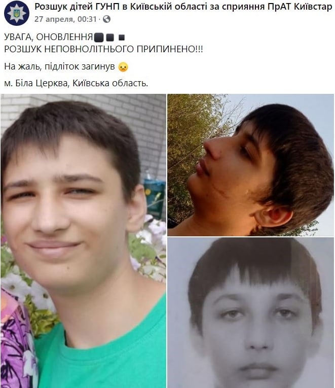 В пятницу, 30 апреля, под Киевом нашли мертвым 17-летнего парня из Белой Церкви, который пропал несколько дней назад.