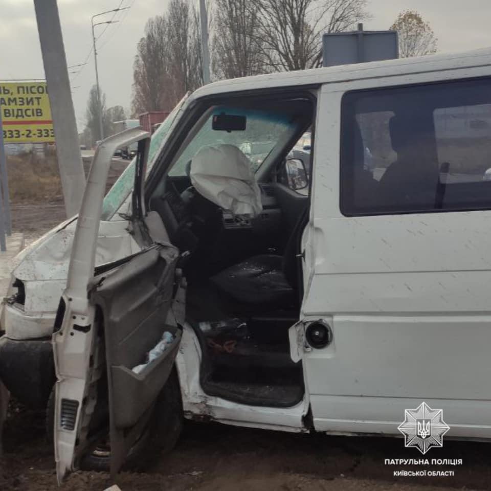 В пятницу, 5 ноября, около 13:00, под Киевом, около села Погребы на улице Погребской Путь, произошло ДТП с участием пассажирского микроавтобуса "Эталон" и автомобиля Volkswagen.