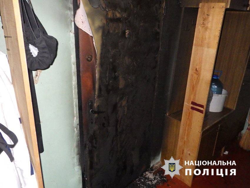 В Киеве женщина в состоянии опьянения подожгла соседские двери и причинила телесные повреждения следователю.