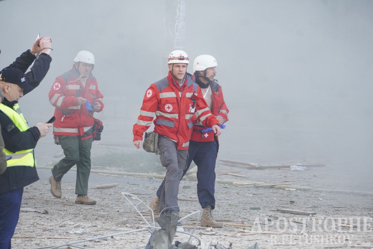 Также на кадрах последствия атаки и разбор завалов спасателями.