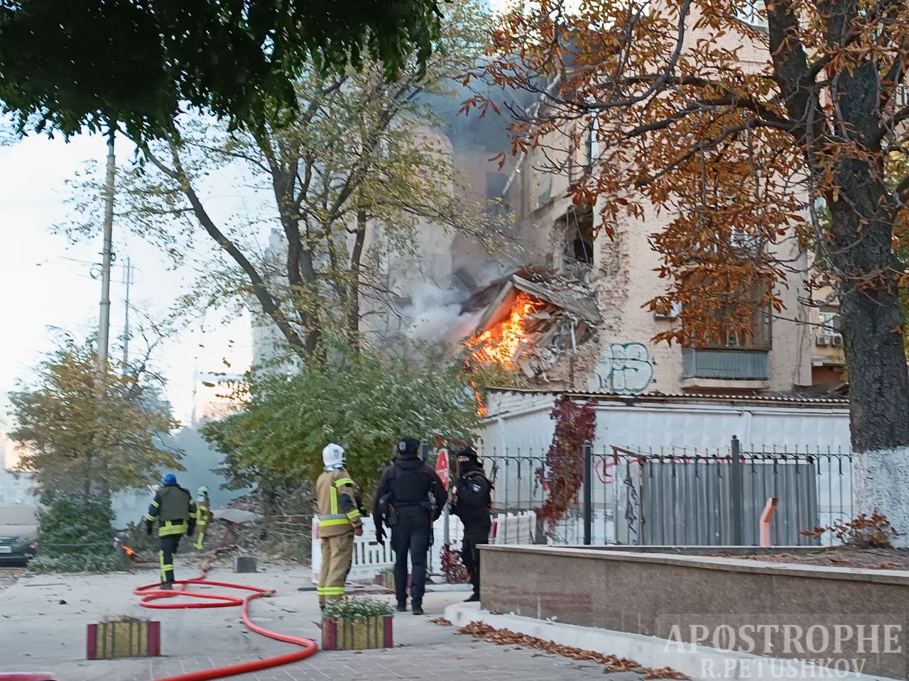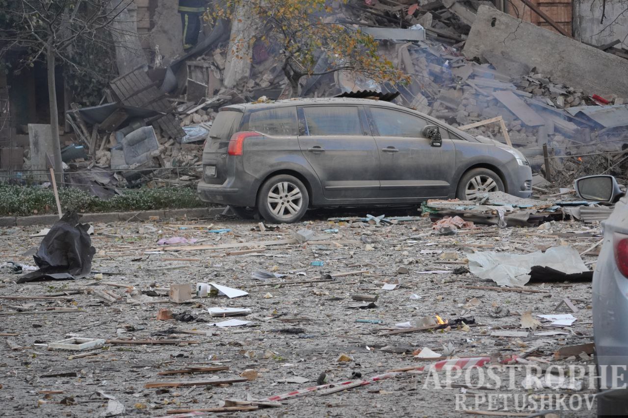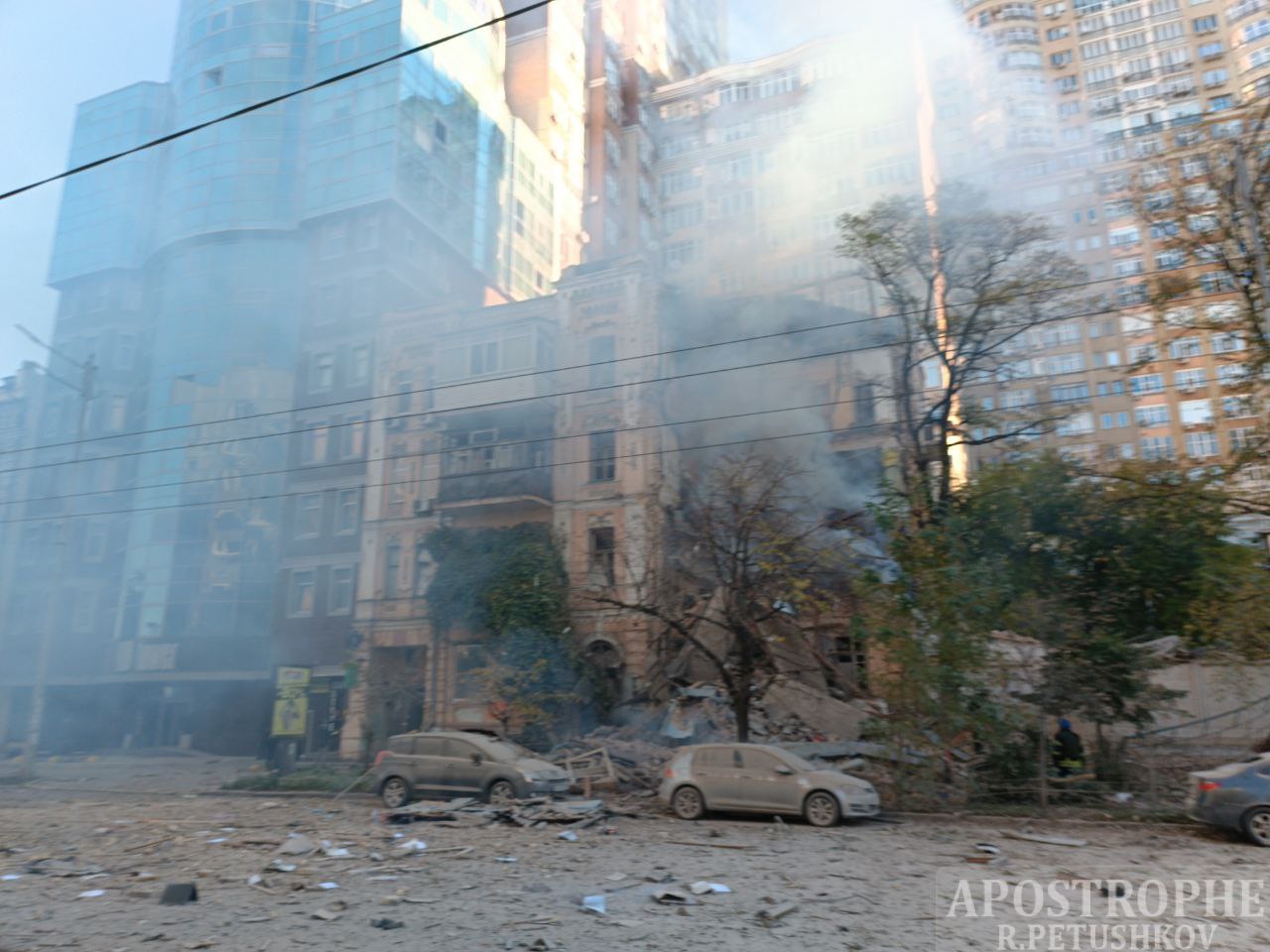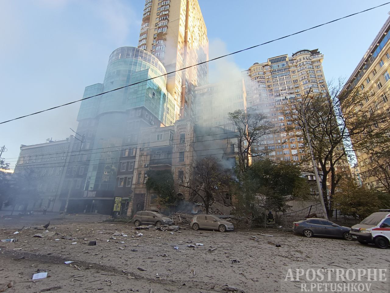 Утром в понедельник, 17 октября, российские оккупанты дронами-камикадзе обстреляли многоэтажку в Шевченковском районе Киева. Разбор завалов продолжается, там остаются люди.