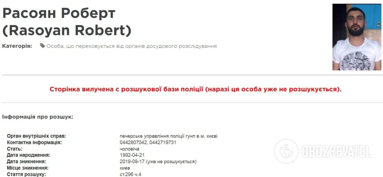 Грузина Роберта Расояна, которого недавно расстреляли в Днепровском районе Киева, дважды объявляли в розыск в Украине.
