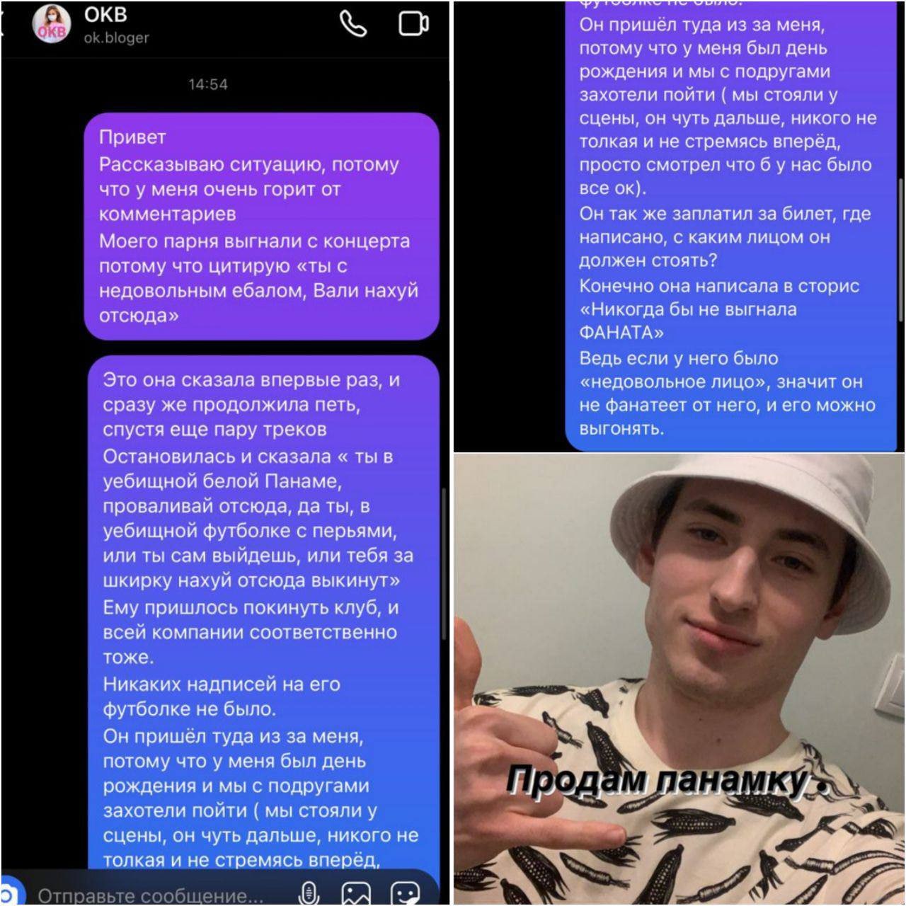 По словам девушки, в Инстаграме блогер написала, что выгнала парня, потому что он не ее фанат, так как поклонники ее с такими лицами не стоят на концерте.
