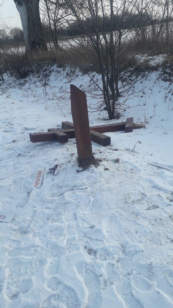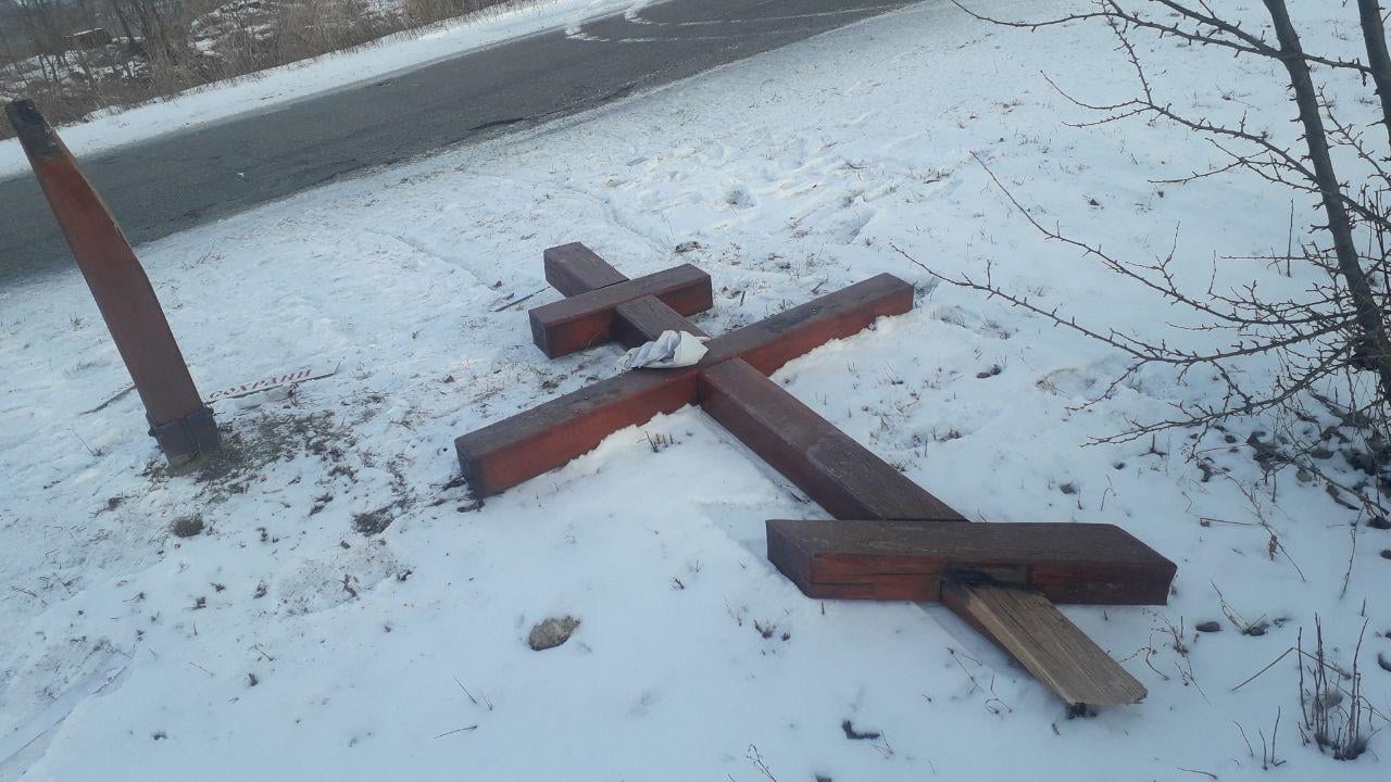 В среду, 2 февраля, в темное время суток двое подвыпивших повредили памятный крест в Киевской области. За это им может грозить реальный срок.
