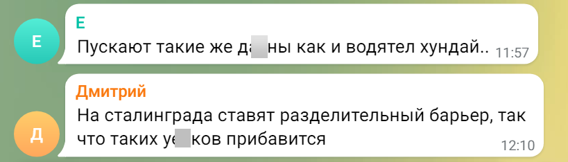 Инцидент произошел на проспекте Героев Сталинграда. Судя по видео, автомобиль Hyundai попытался объехать пробку по тротуару и пешеходному переходу, чтобы "втиснуться" в поток. Видимо, один из автомобилей в пробке все же его пропустил.
