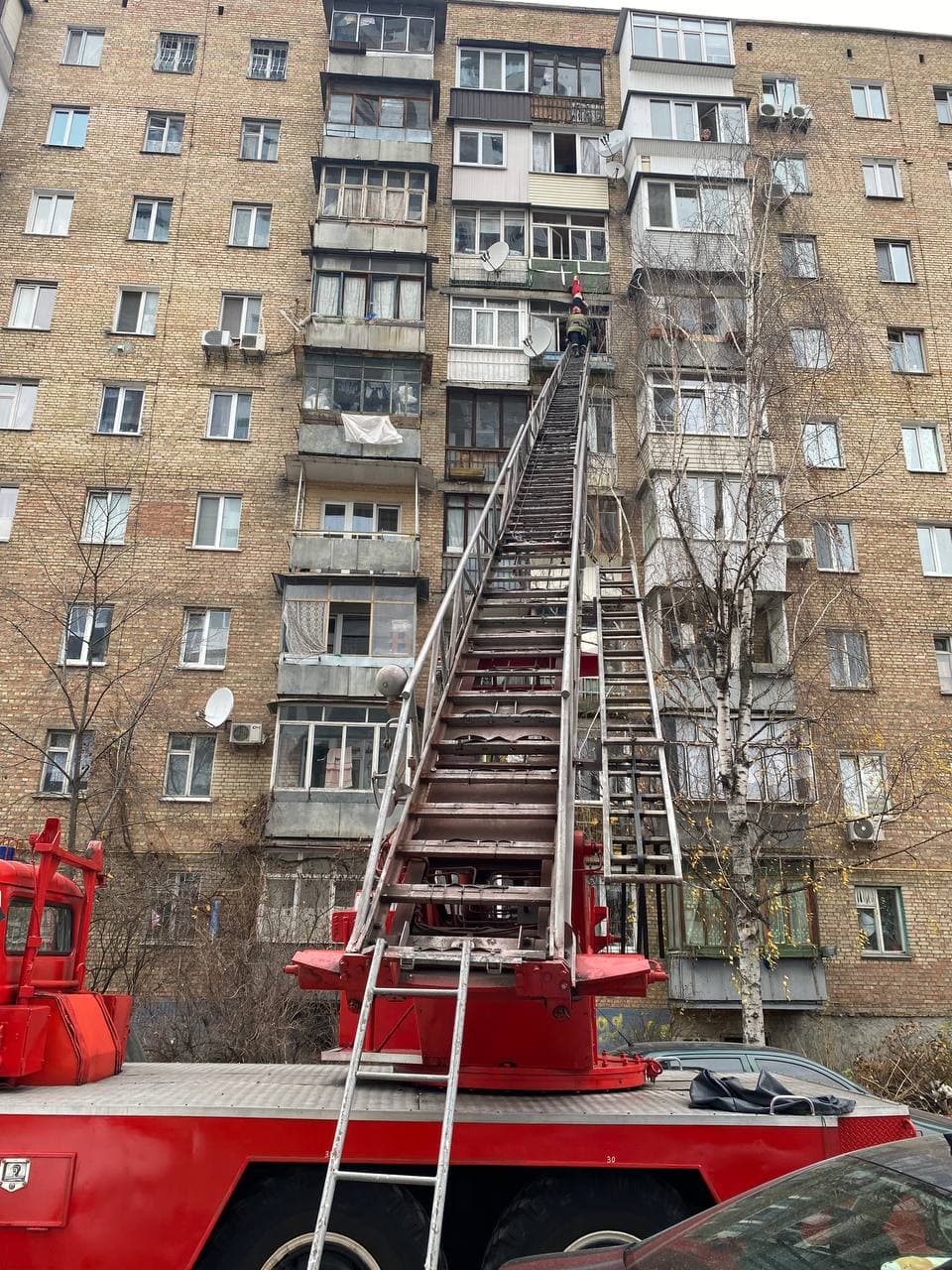 В Святошинском районе столицы в понедельник, 8 ноября, пожилая женщина выпала с балкона и зацепилась за выступающую часть конструкции двумя этажами ниже. Спасателям пришлось снимать труп с балкона при помощи спецтехники.