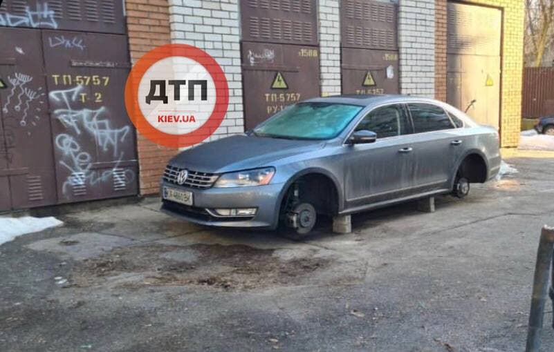 Как сообщал "Апостроф", в ночь на 22 февраля, в Киеве автомобильные воры сняли колеса с машины, припаркованной во дворе жилого дома на улице Сергея Данченко.