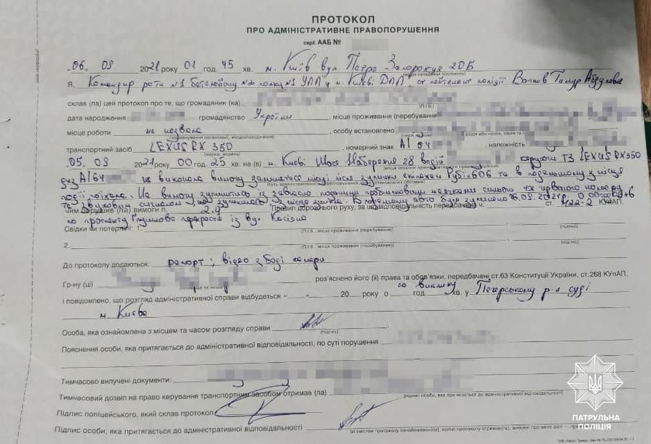 В Киеве девушка за рулем автомобиля Lexus нарушила ПДД и попыталась сбежать от правоохранителей.