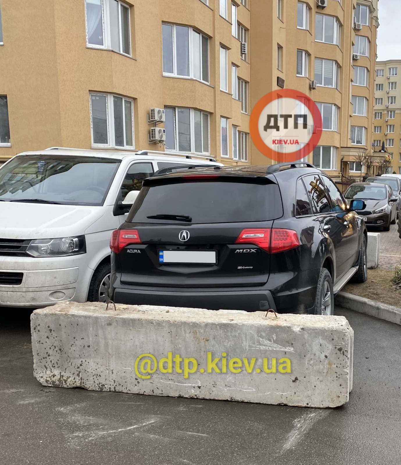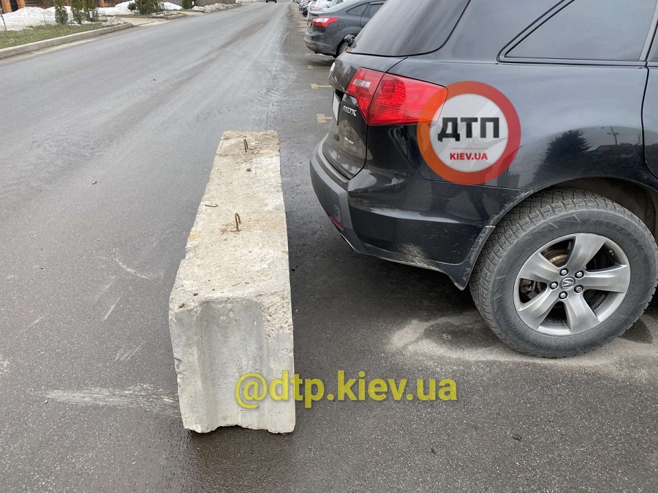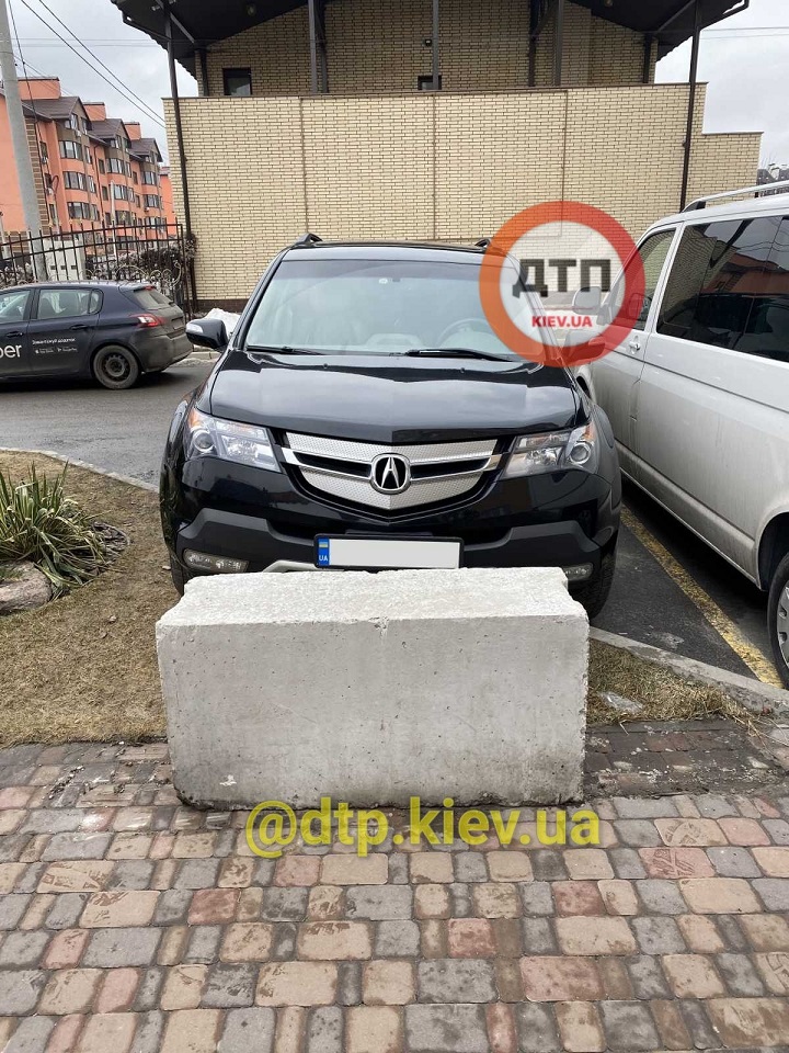 "Граждане заблокировали бетонным блоком нарушителя парковки на Акура. Как теперь бедолаге выехать?" - иронически сокрушаются в подписи к опубликованным фото.