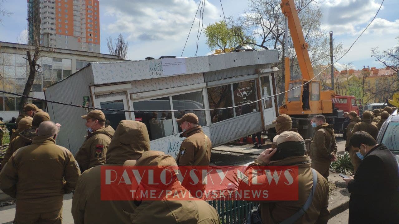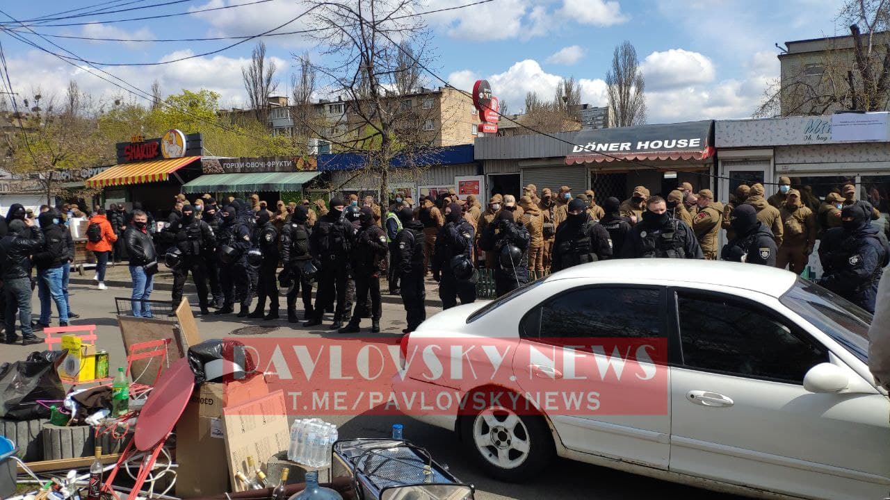 Как писал "Апостроф", МАФы сносят на улице Регенераторной. Потасовка произошла между владельцами МАФов, коммунальщиками, также присутствовала полиция и представители Муниципальной Варты.