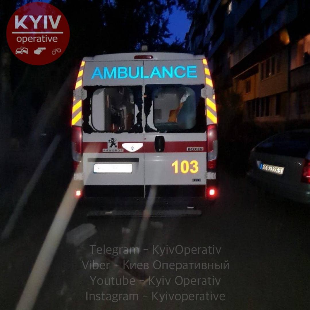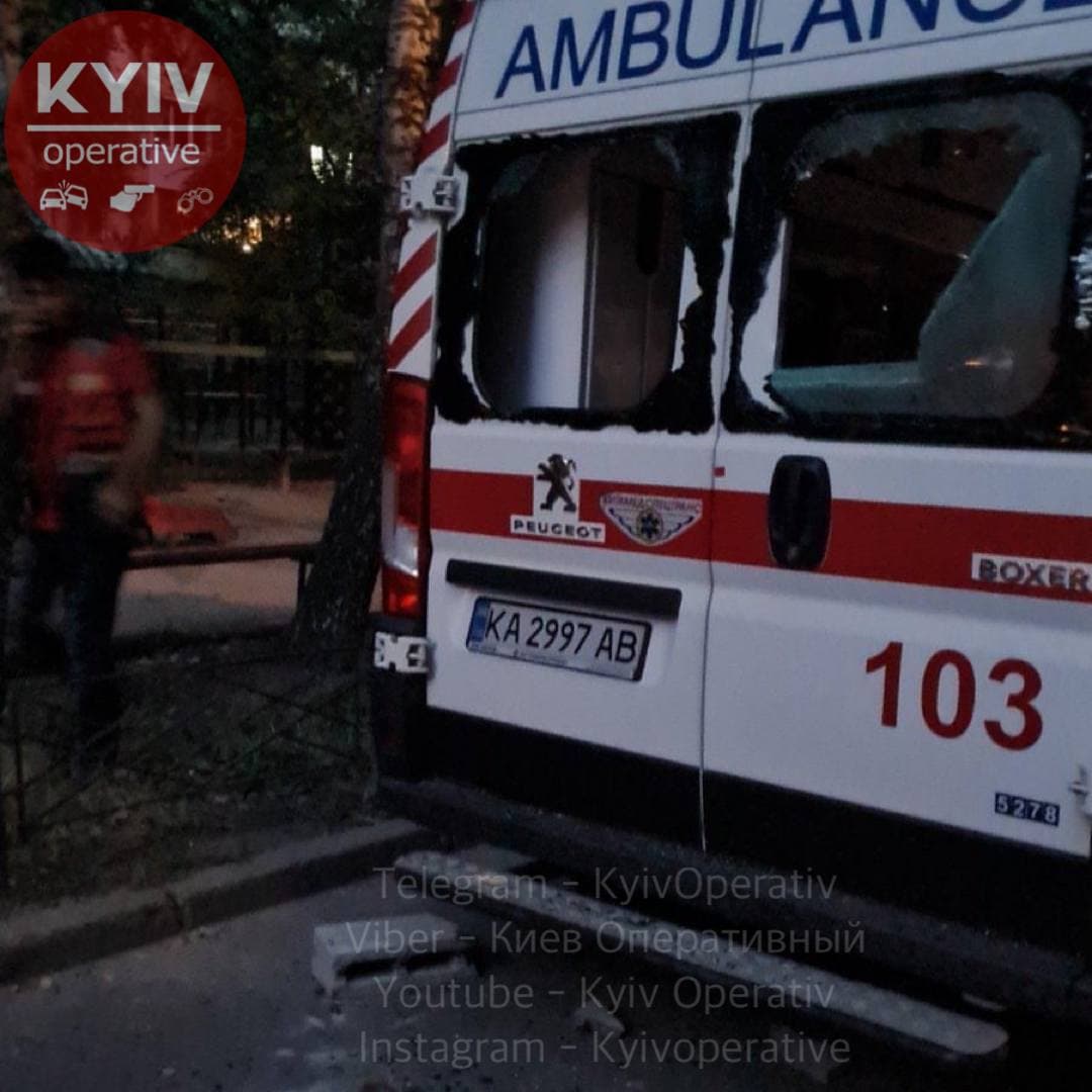 В Киеве утром в субботу, 14 августа, пьяный мужчина с ножом набросился на медиков "скорой помощи", а после разбил стекла в их машине булыжником.
