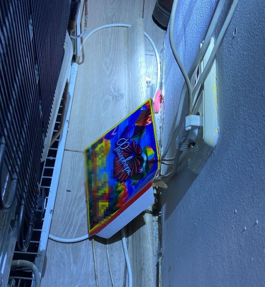 На месте инцидента следователи изъяли использованную пусковую установку, установили предполагаемого подозреваемого и провели в его квартире обыск. Правоохранители обнаружили в квартире любителя шумного веселья крышку от использованного фейерверка.