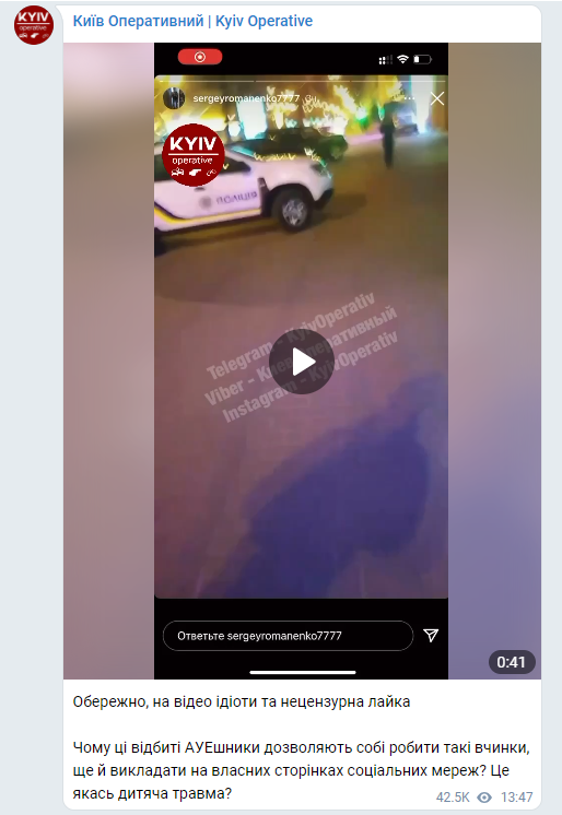В Киеве мужчина справил нужду на двери полицейского автомобиля и опубликовал видео в Instagram.