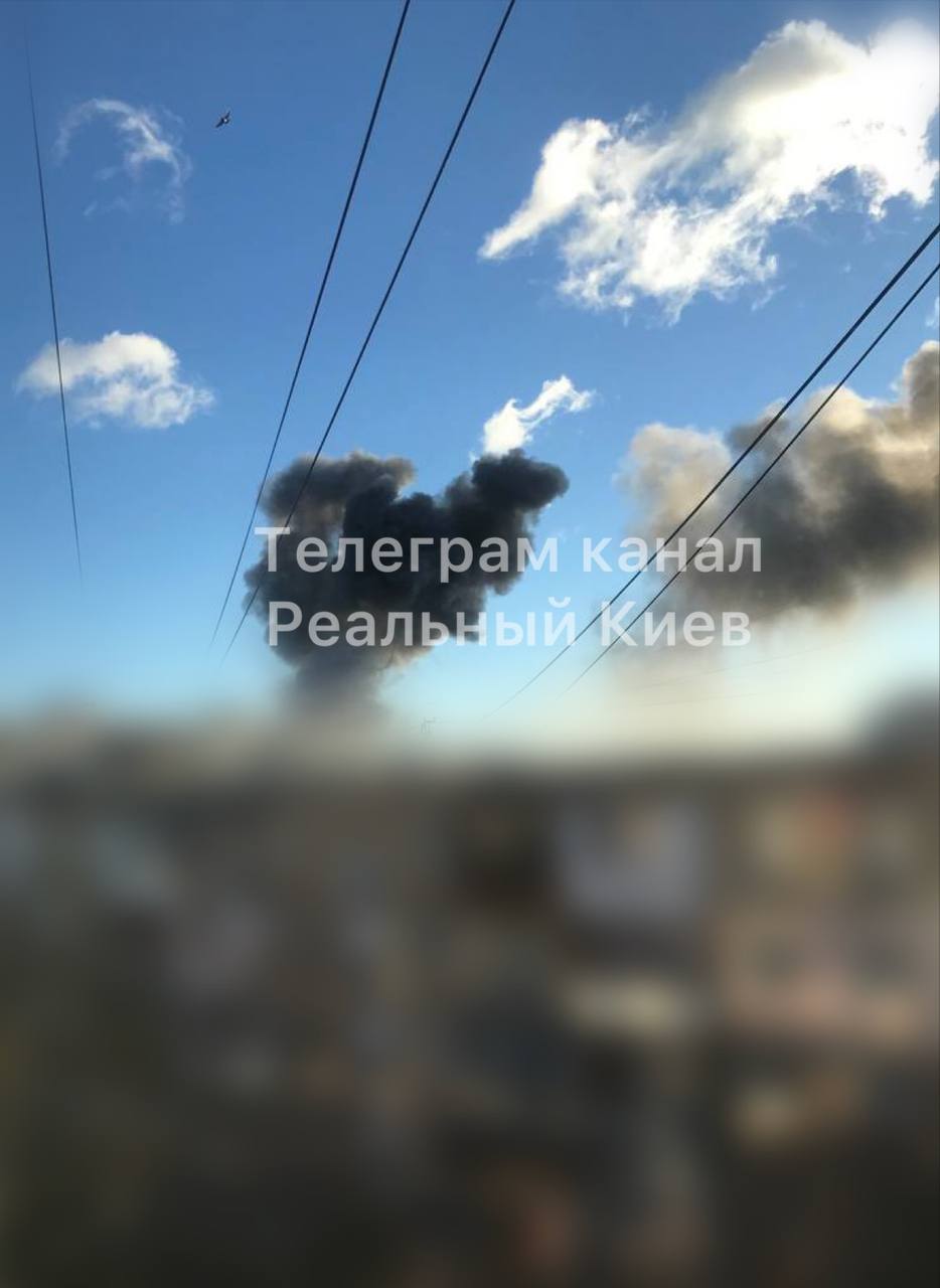 Очевидцы сообщают о близко 10 взрывов. Пишут, что одну из ракет ПВО сбила над Киевом. Сообщается, что есть и "прилет", над местом поднимается дым. В некоторых районах начал пропадать свет.