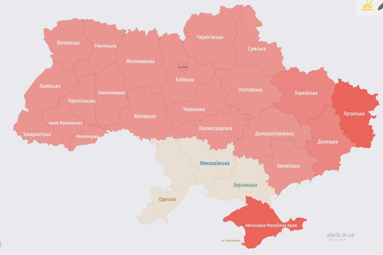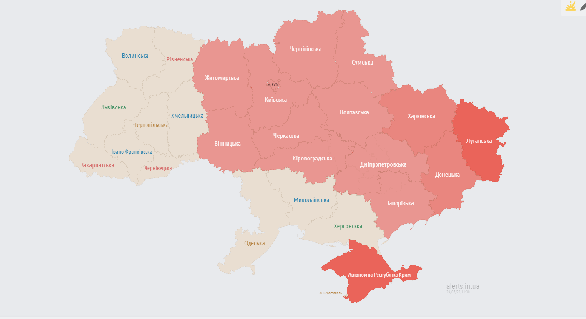 Около 11.40 воздушная тревога накрыла и все западные области.