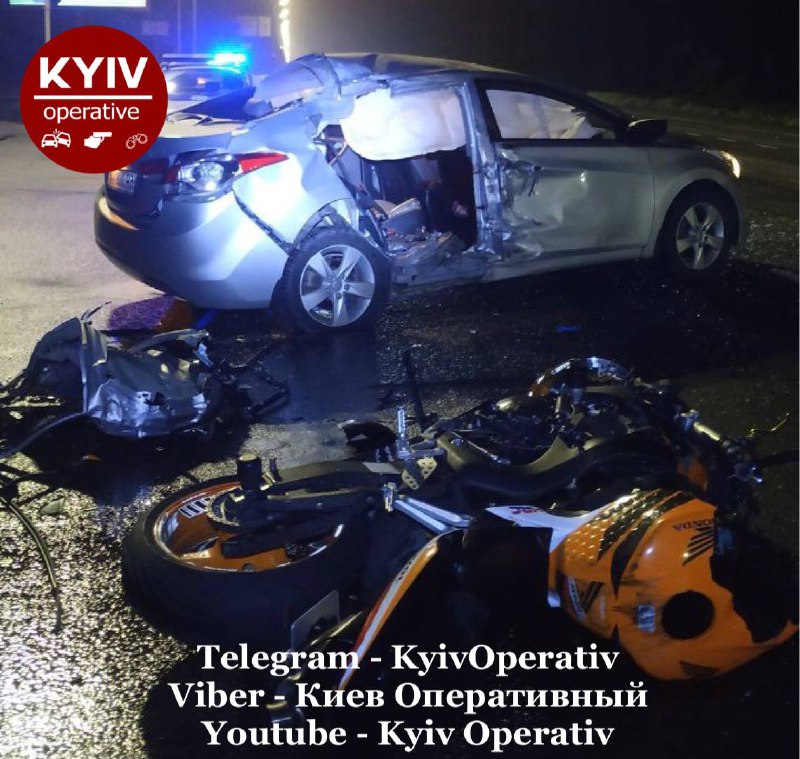 Во вторник, 18 мая, в Голосеевском районе Киева мотоцикл на высокой скорости столкнулся с легковушкой. Мотоциклист скончался на месте.