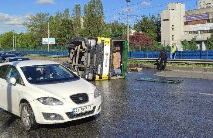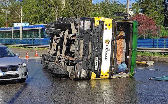 Утром 12 мая в Киеве произошло серьезное ДТП с участием бетономешалки.