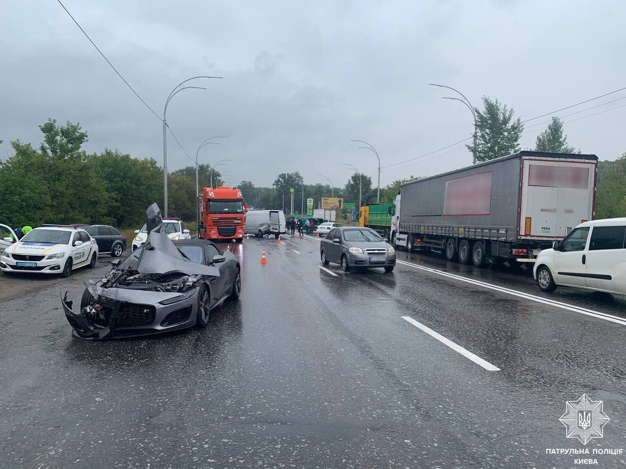 Во вторник, 2 августа, в Киеве произошло масштабное дорожно-транспортное происшествие с участием семи авто, в том числе элитного спорткара Jaguar F-Type R.