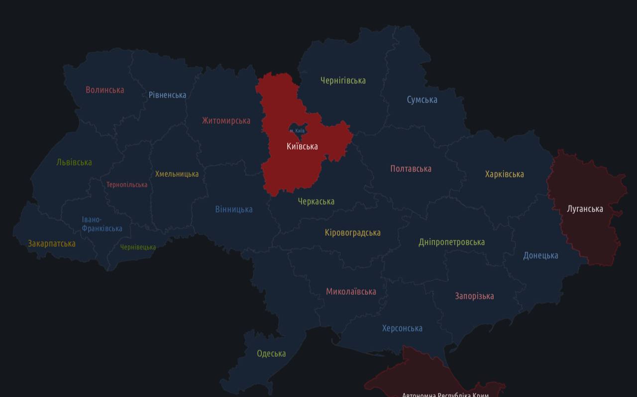 Тревога на данный момент объявлена только в Киевской области. В самом Киеве тревоги нет.