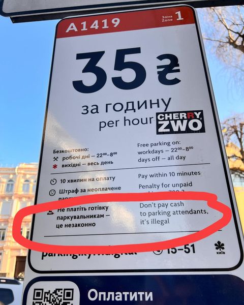 "Там для этого отведены места с синей разметкой. Я всегда использую приложение "Киев Цифровой" для оплаты парковки, но сегодня выходной, поэтому парковка бесплатная. Короче, паркуюсь себе нормально и подбегает уже знакомый мне парень. И здесь у нас случается диалог: