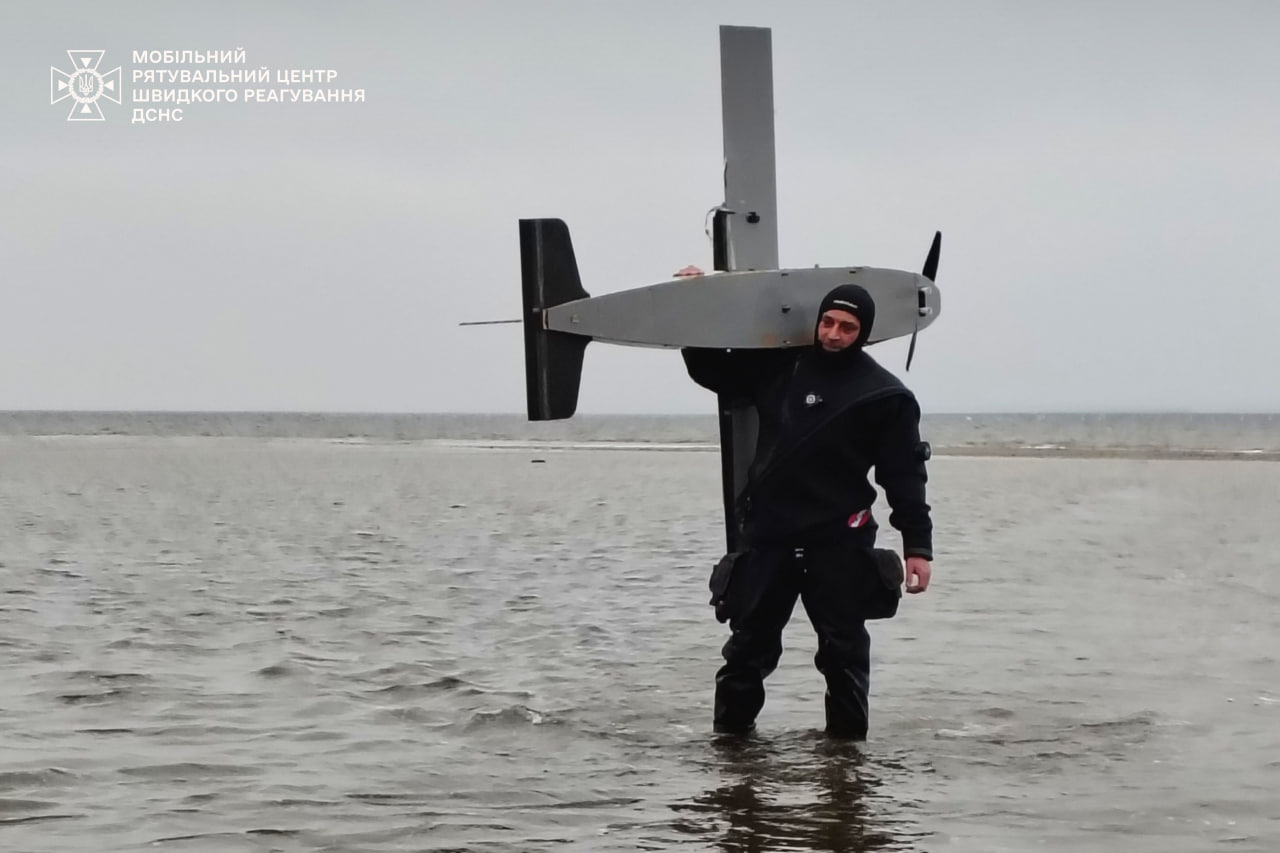 По информации пресс-службы, обломки дрона обнаружил житель села Лебедивка во время прогулки и сообщил об этом спасателям. Водолазы-саперы обследовали акваторию и изъяли остатки БПЛА.