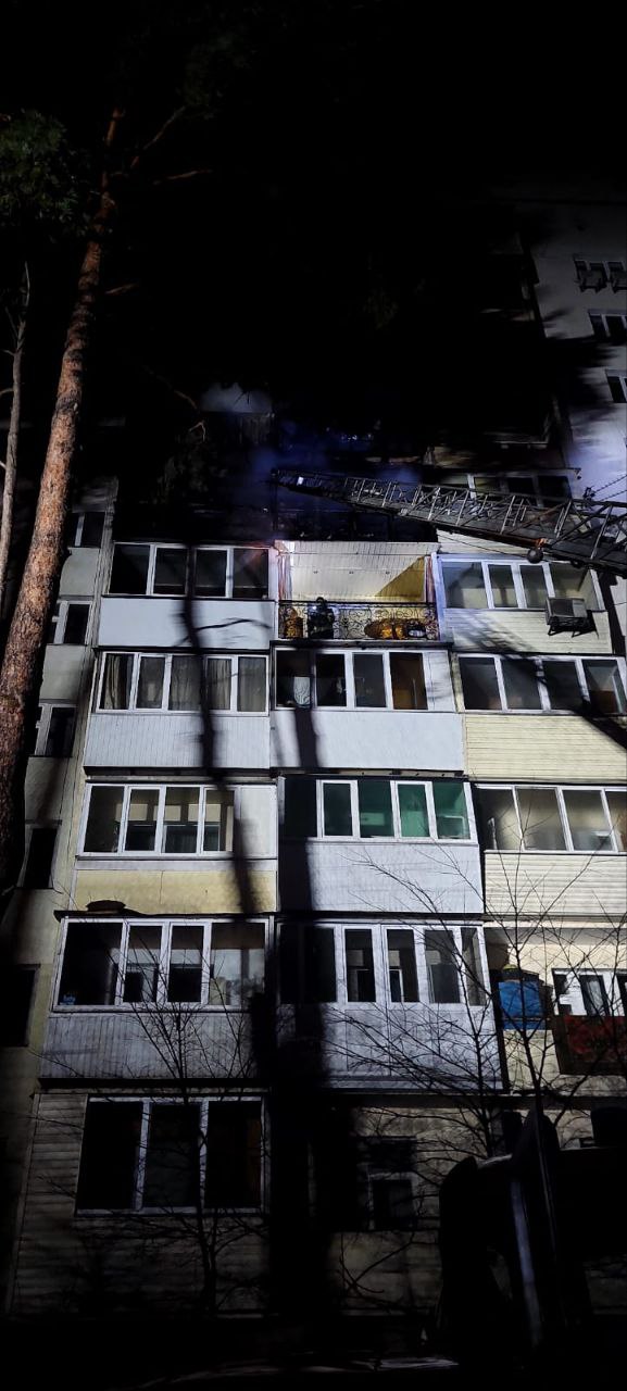Огонь уничтожил четыре балкона на восьмом и девятом этажах и две комнаты в двух квартирах на шестом и седьмом этажах.