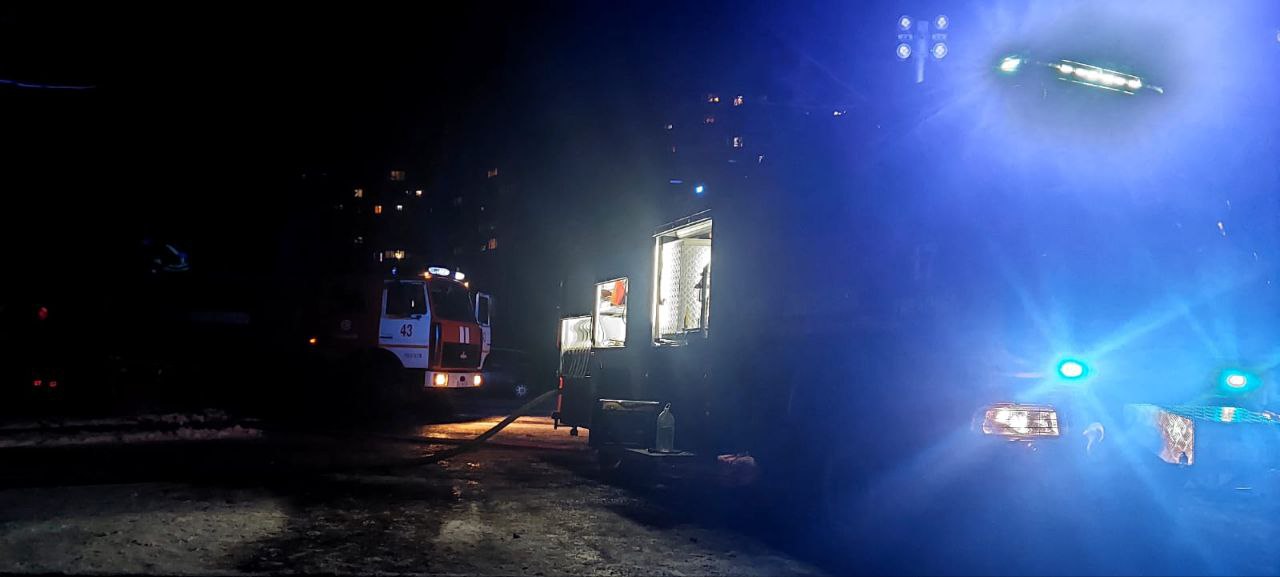 Пожар произошел на улице Сосновой. По предварительной информации причиной стали бытовые приборы или газовые баллоны в квартирах.