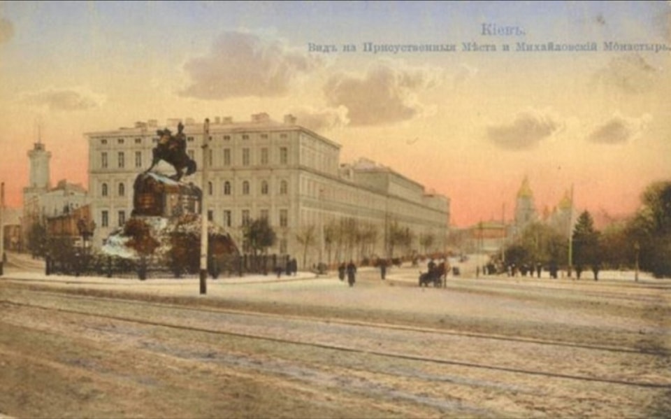 Здание построено между двумя известными соборами Киева - Софийским и Михайловским. Раньше здесь действовали отделы губернского правления и казенная палата.