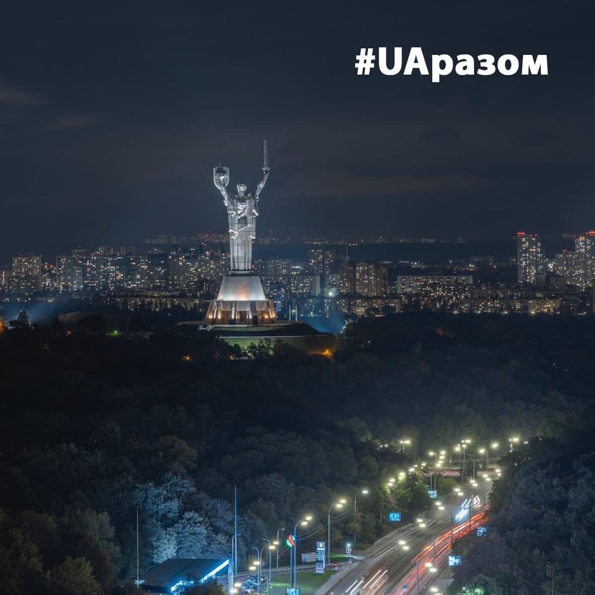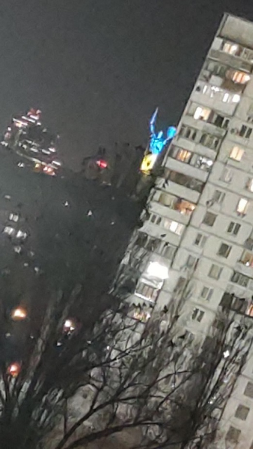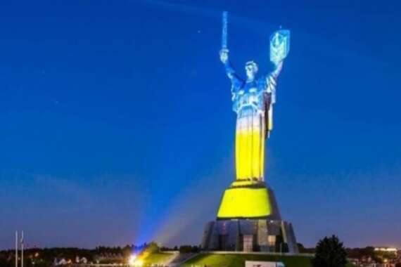 Сегодня, 4 февраля в 19:00, самый высокий монумент в Украине "Родина-Мать" подсветили в цвета государственного флага Украины.