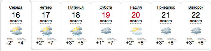 В Киеве в среду, 16 февраля, без осадков. Температура максимум прогреется до 4° тепла. В четверг с 14 до 17 часов ожидаются осадки. На выходных станет немного теплее, в воскресенье и вовсе прогнозируется солнечная погода, температура днем - 2-6°.