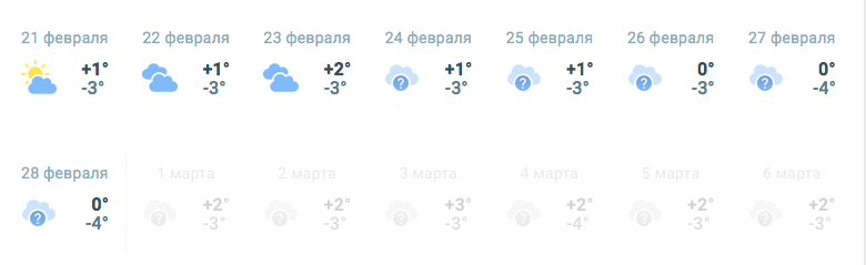 В среду, 23 февраля, погода немного подпортит настроение жителям столицы. Вместо мелкого снега, который начнется утром, во второй половине дня будет идти мелкий дождь, который продлится до конца дня. Самый теплый день месяца - 25 февраля: температура прогреется до +11°.